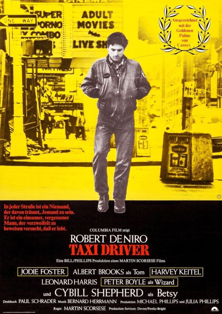 Travis, un veterano de Vietnam -detalle no poco importante-, consigue un trabajo como taxista nocturno en Nueva York. Así, mientras camufla sus traumas, escupe su rabia y despliega un recital de emociones vehementes, el espectador acude atónito a la violenta síntesis de un ciudadano asqueado con el sistema; un sistema podrido al que culpa de su mala suerte y que provoca su paroxismo. De Niro apabulla en esta magistral y demoledora radiografía de la estresante y salvaje sociedad urbana. Scorsese confirma sus credenciales al olimpo del cine con este brutal clásico del cine contemporáneo.